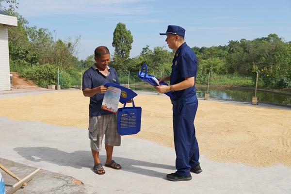 秋收時(shí)節(jié)宣傳活動(dòng)中,大足區(qū)消防救援支隊(duì)宣傳人員走進(jìn)田間地頭、農(nóng)戶家中、小區(qū)曬壩、收割機(jī)集中點(diǎn)等地,廣泛宣傳稻谷收割機(jī)消防安全常識(shí)、秋收季節(jié)火災(zāi)特點(diǎn)、高溫天氣防火注意事項(xiàng)等知識(shí);通過發(fā)放消防宣傳資料向廣大農(nóng)戶進(jìn)行消防安全提示,面對面宣講如何正確撥打火災(zāi)報(bào)警電話、如何正確使用身邊的滅火器材進(jìn)行初起火災(zāi)撲救、如何正確從火場逃生自救等知識(shí),在轄區(qū)營造了濃厚的消防宣傳氛圍。