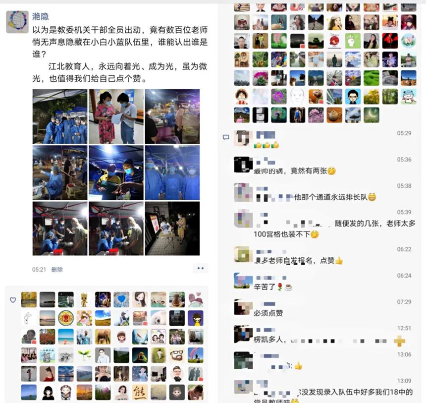 這條朋友圈,屬于網(wǎng)友“滟隱”,她來自教育系統(tǒng)。23日下午到24日,江北教育系統(tǒng)的黨員干部應(yīng)急隊(duì),第一時間趕到了區(qū)內(nèi)各核酸采樣點(diǎn),很多學(xué)校的教師志愿者也就近自愿奔赴,掃樓、錄入、現(xiàn)場引導(dǎo)……