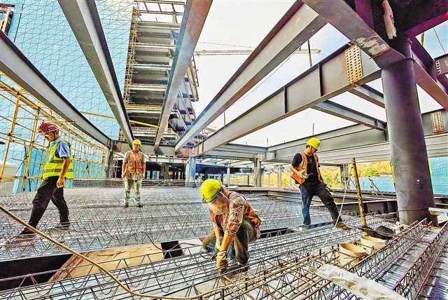 八月二十九日,西部(重慶)科學(xué)城中科院重慶科學(xué)中心一期施工現(xiàn)場(chǎng),工人正在進(jìn)行鋼筋桁架樓承板安裝。首席記者 龍帆 實(shí)習(xí)生 尹詩(shī)語(yǔ) 攝\視覺(jué)重慶