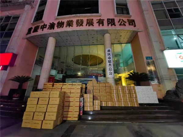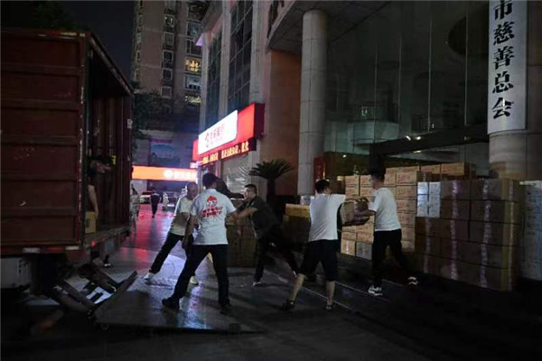 6日晚20時20分,重慶市慈善總會樓下,所有捐贈物資均已就位,慈善總會工作人員同愛心企業(yè)一道,將一箱箱愛心物資進行裝車。