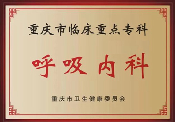 呼吸內(nèi)科獲得“重慶市臨床重點??啤?。重慶西區(qū)醫(yī)院供圖