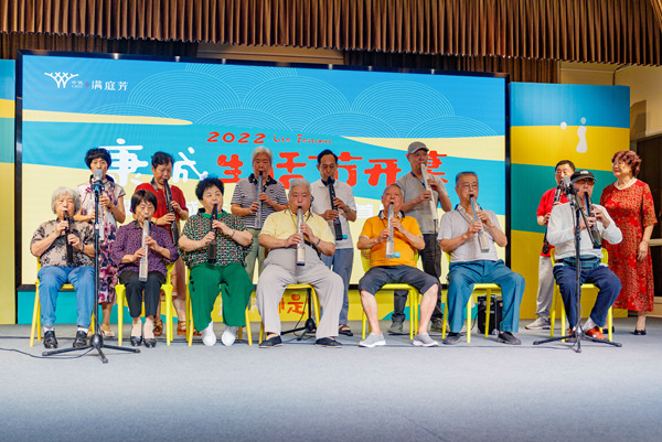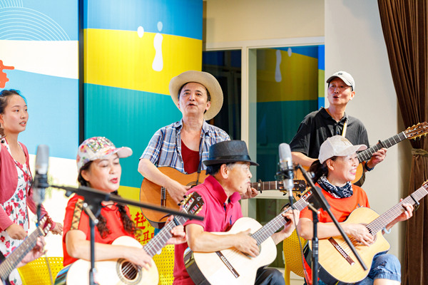 在康城生活節(jié)開(kāi)幕式上,這群對(duì)生活充滿熱愛(ài)的老年人,用他們的歌聲、故事感染著參加活動(dòng)的每一個(gè)人。吉他組合帶來(lái)的曲目演奏《我們的生活充滿陽(yáng)光》,表演者表示,這不僅是音符組成的樂(lè)曲,也是他們內(nèi)心對(duì)于當(dāng)前養(yǎng)老生活感受的最佳寫(xiě)照?!拔疫€是從前那個(gè)少年,沒(méi)有一絲絲改變,時(shí)間只不過(guò)考驗(yàn)……”隨后,老人們還演唱了網(wǎng)絡(luò)熱門(mén)歌曲《少年》。剛成立不久的電吹管俱樂(lè)部,則帶來(lái)了《送別》《鴻雁》,表達(dá)他們安家中鐵健康城的安心。