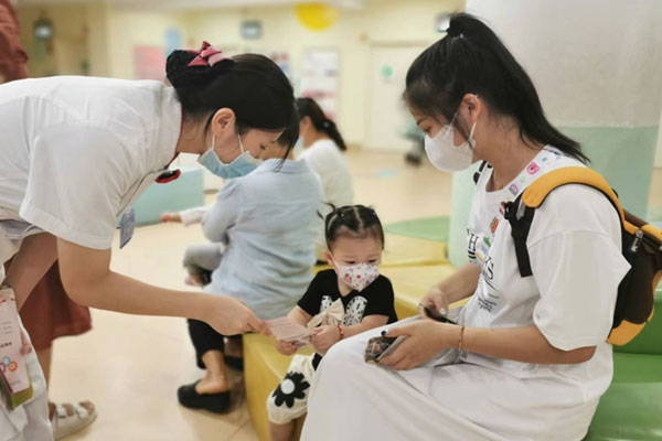 發(fā)放宣傳手冊。江津區(qū)婦幼保健院供圖
