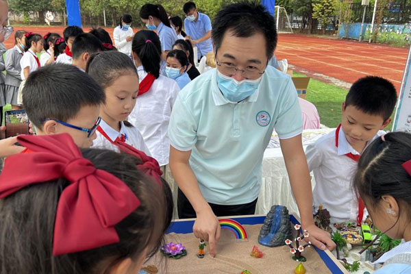 9月21日,江北區(qū)2022年全國科普日活動在江北嘴實(shí)驗(yàn)學(xué)校啟動,一群身著天藍(lán)色隊(duì)服的志愿者以豐富有趣的游戲形式,幫助小學(xué)生積極融入到心理活動中,讓他們在游戲中獲得心理健康科學(xué)知識,提升心理健康意識,掌握心理健康技能。