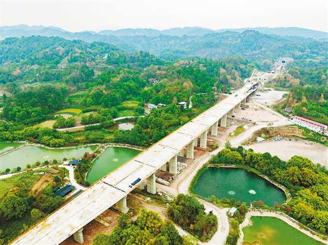 9月20日,位于巴南區(qū)惠民街道的渝湘高鐵重慶至黔江段石家沖四變二特大橋建設(shè)現(xiàn)場。
