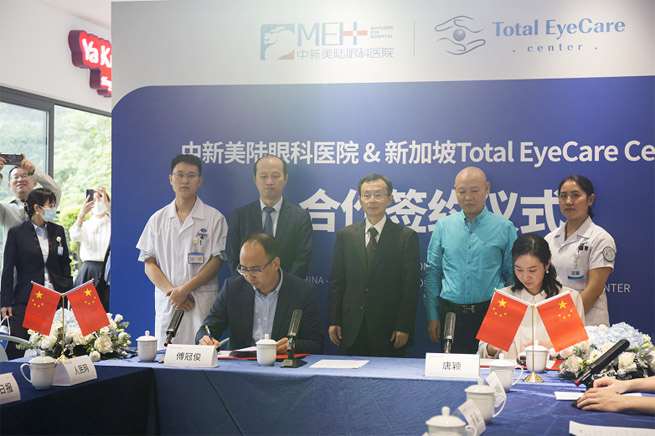中新美陸眼科醫(yī)院與新加坡機構簽約。院方供圖