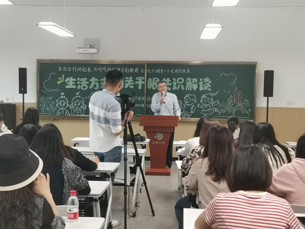 2022年9月是教育部第五個近視防控宣傳月,本次宣傳月的主題是“全社會行動起來,共同呵護好孩子的眼睛,讓他們擁有一個光明的未來”。近日,重慶華廈眼科醫(yī)院院長、眼表與角膜病專家謝漢平受邀來到江北區(qū)培新小學,為老師們帶來了“生活方式相關干眼共識解讀”,提高老師們對干眼癥及其預防方式的認識。