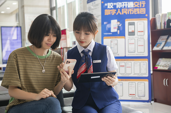 工作人員指導客戶使用數(shù)字人民幣錢包。交行重慶市分行 供圖