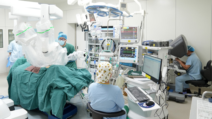 何大維教授介紹,相較于傳統(tǒng)腹腔鏡微創(chuàng)手術(shù),達芬奇機器人手術(shù)更加精準(zhǔn)、高效,能減輕患兒痛苦,降低術(shù)后并發(fā)癥,實現(xiàn)快速康復(fù),尤其是操作空間狹窄的復(fù)雜外科手術(shù)。(陳琦、袁儒青)
