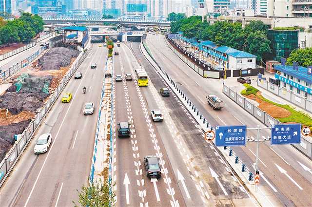 10月14日,新牌坊立交工程關(guān)鍵線路B匝道建成通車。通車后,由人和經(jīng)紅錦大道至松牌路方向行駛車輛無需再經(jīng)由新牌坊轉(zhuǎn)盤繞行,可直接從B匝道下穿道快速通行,極大緩解該方向車輛通行擁堵現(xiàn)狀。