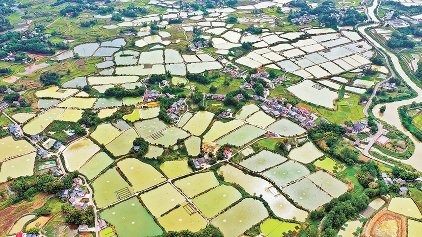 近年來,梁平區(qū)依托豐富的水資源優(yōu)勢,打造禮讓鎮(zhèn)川西村龍溪漁歌景區(qū),大力發(fā)展?jié)O文旅產(chǎn)業(yè),助推鄉(xiāng)村旅游和鄉(xiāng)村振興。這是10月12日拍攝的梁平區(qū)川西村,魚塘與田園構(gòu)成一幅美麗的鄉(xiāng)村圖景。