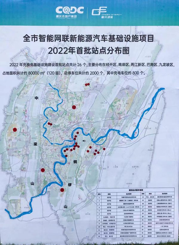 為加快推進重慶市智能網聯(lián)新能源汽車基礎設施和服務體系建設,助力重慶建成世界級智能網聯(lián)新能源汽車產業(yè)集群,10月28日上午,重慶市智能網聯(lián)新能源汽車基礎設施項目首批站點暨廣陽灣智創(chuàng)生態(tài)城示范區(qū)開工活動在重慶經開區(qū)舉行。首批充換電站計劃于明年一季度完工。
