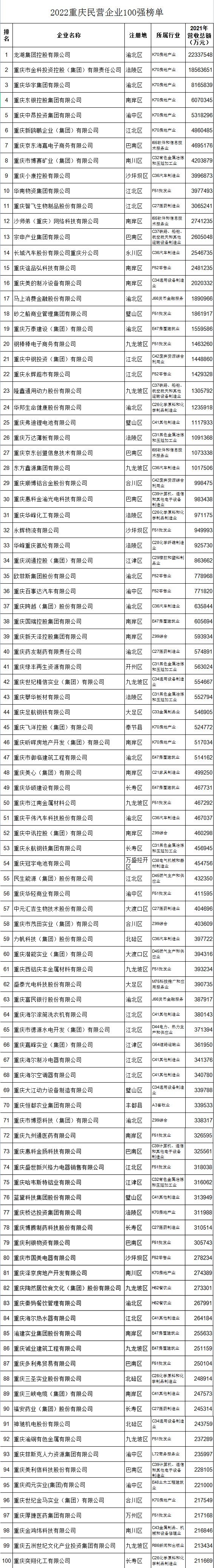 附:2022重慶民營企業(yè)100強榜單;2022重慶制造業(yè)民營企業(yè)100強榜單。