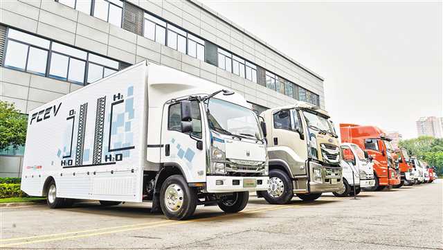 慶鈴集團研制的氫能源樣車、重型電動車。記者 張錦輝 攝\視覺重慶