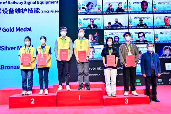 重慶運(yùn)輸職院學(xué)代表隊(duì)奪得2022年金磚國家職業(yè)技能大賽鐵路信號設(shè)備維護(hù)技能賽項(xiàng)一等獎。重慶運(yùn)輸職院供圖