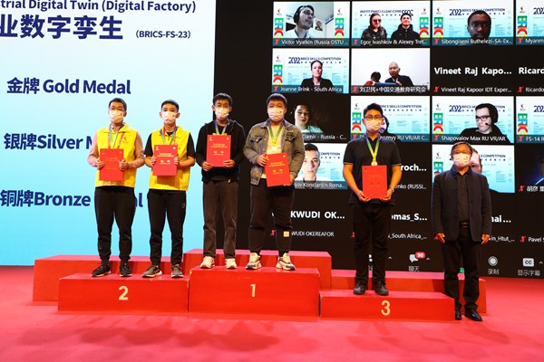 重慶運(yùn)輸職院教師代表隊(duì)奪得2022年金磚國家職業(yè)技能大賽工業(yè)數(shù)字孿生賽項(xiàng)全國一等獎。重慶運(yùn)輸職院供圖