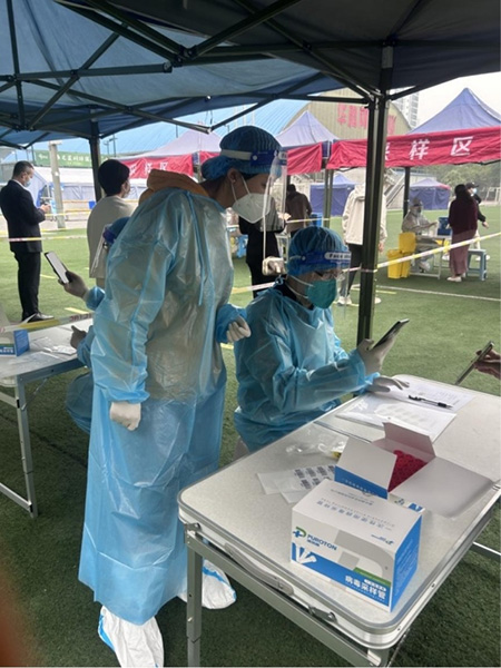 浦發(fā)銀行工作人員協(xié)助開展核酸檢測(cè)。浦發(fā)銀行重慶分行供圖
