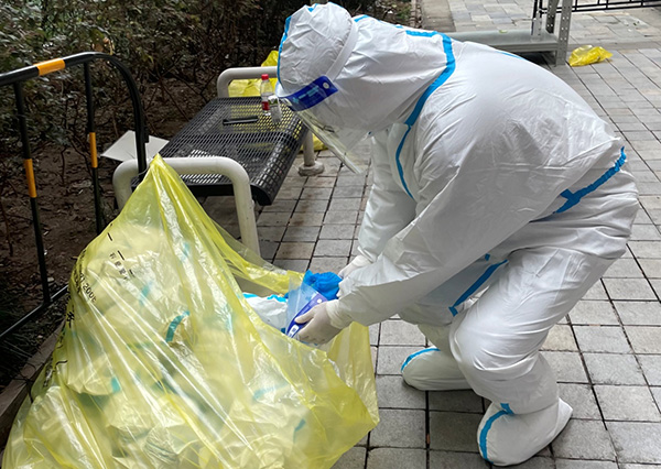 吳越參加居民生活垃圾清理工作。進出口銀行重慶分行供圖