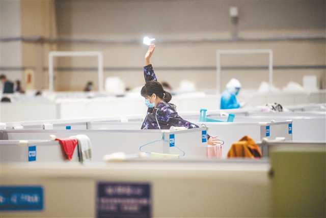 11月20日,悅來方艙醫(yī)院內(nèi),一名患者在鍛煉身體。方艙醫(yī)院內(nèi),醫(yī)護(hù)人員結(jié)合患者實(shí)際情況,用不同方式指導(dǎo)其調(diào)整心態(tài),緩解焦慮,努力戰(zhàn)勝病毒。記者 鄭宇 攝/視覺重慶