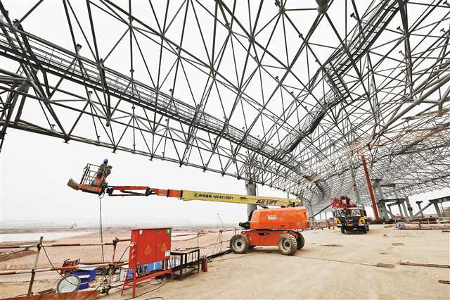 十一月十八日,江北國(guó)際機(jī)場(chǎng)T3B航站樓,中建八局一千多名技術(shù)工人正在緊張施工。目前,T3B航站樓指廊鋼結(jié)構(gòu)施工基本完成,正全力攻堅(jiān)航站樓大廳建設(shè)。記者 羅斌 攝\視覺重慶