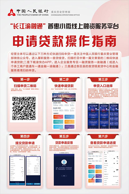 “長(zhǎng)江渝融通”普惠小微線上融資服務(wù)平臺(tái)申貸指南。重慶農(nóng)商行供圖