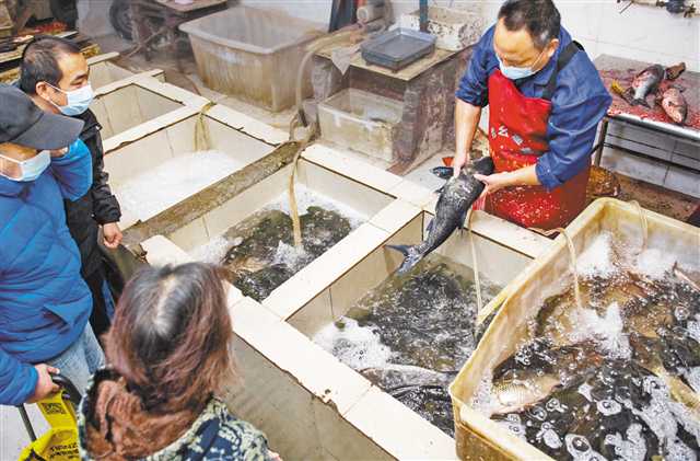 十二月五日,江北區(qū)盤溪二支路本色農(nóng)超,商販正在賣魚。當天,不少市民來到該市場選購淡水魚、果蔬等農(nóng)產(chǎn)品。記者 張錦輝 攝\視覺重慶