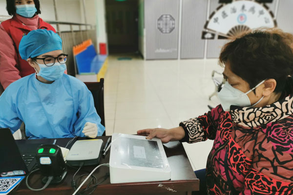 引導(dǎo)老年人登記信息。江津區(qū)婦幼保健院供圖
