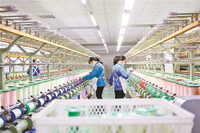 12月14日,黔江區(qū)工業(yè)園區(qū)花神絲綢紡織有限公司,女工在車(chē)間忙碌。年關(guān)將近,該公司加足馬力趕制海外訂單。特約攝影 楊敏/視覺(jué)重慶