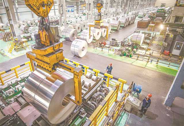 12月15日,西南鋁生產(chǎn)線,工人正在忙碌。