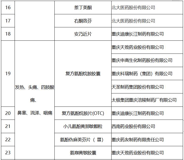 目錄結(jié)合全市重點(diǎn)醫(yī)藥企業(yè)新冠肺炎對(duì)癥預(yù)防和治療相關(guān)藥品信息,針對(duì)發(fā)熱、頭疼、咳嗽、咽痛等癥狀推薦29個(gè)地方化藥品種、48個(gè)地方中藥品種。