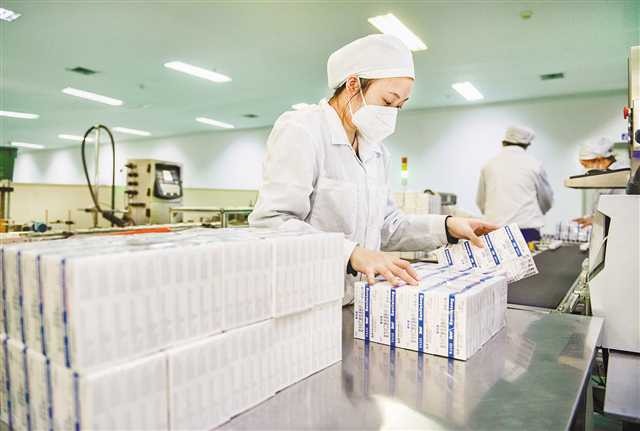 12月20日,位于沙坪壩區(qū)的西南藥業(yè)股份有限公司,工作人員在口服固體制劑車間包裝藥品,包裝產(chǎn)線以最快每分鐘270盒藥品的速度飛速運轉。