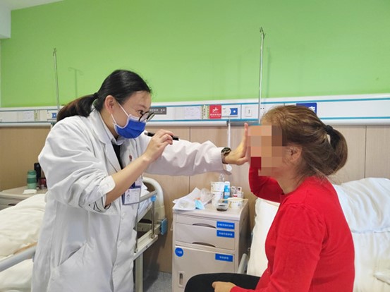 醫(yī)護(hù)人員為朱女士做術(shù)后檢查。重慶愛爾眼科醫(yī)院總院供圖