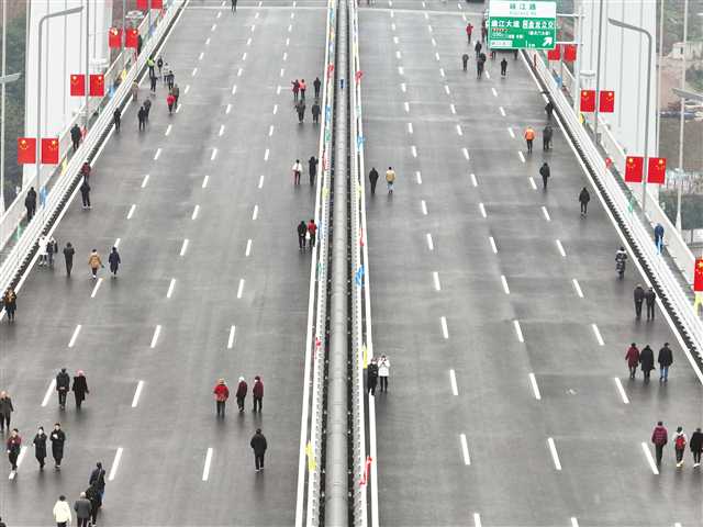 1月18日,郭家沱長(zhǎng)江大橋,市民紛紛趕在通車前前往“踩橋”。特約攝影 郭旭/視覺重慶