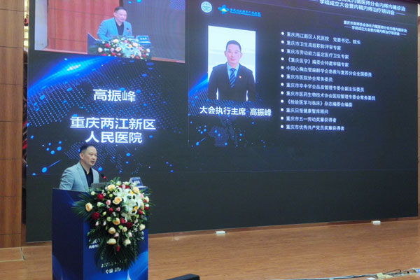 大會(huì)執(zhí)行主席、重慶兩江新區(qū)人民醫(yī)院黨委書記高振峰致辭。何琴攝