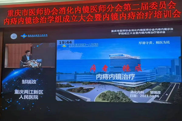 近日,為提高重慶市消化內(nèi)科及消化內(nèi)鏡診治能力,積極推動(dòng)內(nèi)痔內(nèi)鏡治療醫(yī)學(xué)全面發(fā)展,進(jìn)一步提升內(nèi)痔疾病診療水平,由重慶市醫(yī)師協(xié)會(huì)主辦,重慶市醫(yī)師協(xié)會(huì)消化內(nèi)鏡醫(yī)師分會(huì)、重慶兩江新區(qū)人民醫(yī)院、消化內(nèi)鏡醫(yī)師分會(huì)內(nèi)痔內(nèi)鏡診治學(xué)組聯(lián)合承辦的“重慶市醫(yī)師協(xié)會(huì)消化內(nèi)鏡醫(yī)師分會(huì)第二屆委員會(huì)內(nèi)痔學(xué)組成立大會(huì)暨內(nèi)鏡內(nèi)痔治療培訓(xùn)會(huì)”在兩江新區(qū)人民醫(yī)院召開。