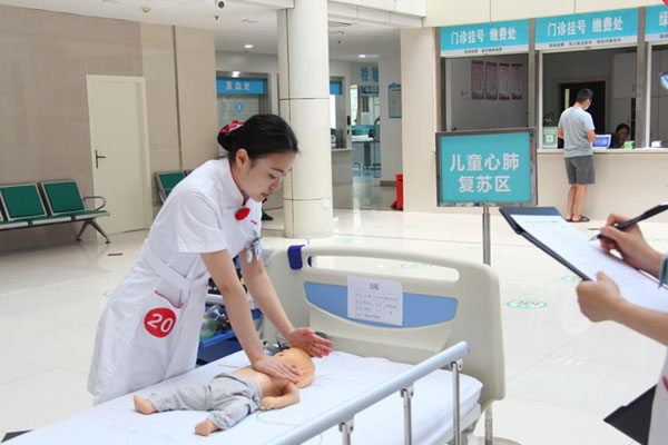 此次技能競賽采用情景模擬案例的方式進行,考核內(nèi)容包括兒童單人徒手心肺復(fù)蘇、孕婦及成人徒手心肺復(fù)蘇等科目。比賽過程中,選手們?nèi)耐度耄瑧B(tài)度嚴(yán)謹(jǐn),操作技術(shù)嫻熟準(zhǔn)確,動作流暢到位,表現(xiàn)出扎實的基本功及良好的職業(yè)素養(yǎng)。經(jīng)過兩個小時的角逐,來自兒??频睦钋锩鲾孬@本次技能競賽一等獎。