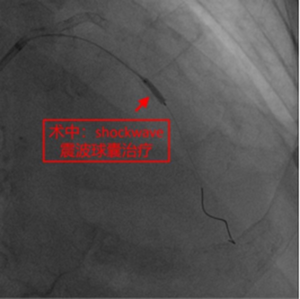 在征得患者及家屬同意,做好充分術(shù)前準備的情況下,冠脈介入團隊在冉擘力主任帶領(lǐng)下,按計劃給患者實施了血管內(nèi)超聲(IVUS)指導下經(jīng)皮冠脈旋磨+Shockwave沖擊波球囊碎裂鈣化斑塊及支架植入術(shù),術(shù)中團隊克服了一系列困難,最終安全順利地完成了全部介入手術(shù)過程,完全碎裂了環(huán)狀鈣化斑塊,效果非常滿意,歷時約1個多小時,手術(shù)成功,病人安返病房。術(shù)后患者胸悶、氣短明顯緩解,對治療效果十分滿意。