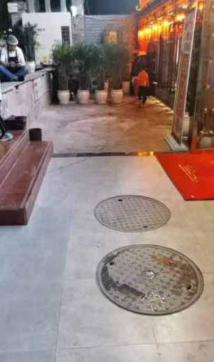 “物管和城管都要求火鍋店不允許露天擺桌子?!?月29日,該網(wǎng)友在留言中表示,位于沙坪壩區(qū)都市花園中路的這家火鍋店,私自將天然氣軟管延長(zhǎng)至露天火鍋?zhàn)捞?。此外,該網(wǎng)友稱,露天火鍋擺桌子處有4個(gè)窨井蓋,據(jù)說是化糞池,存在嚴(yán)重消防安全隱患。
