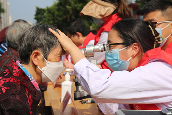 簽約儀式結束后,由醫(yī)院康復醫(yī)學科、神經(jīng)科、呼吸內(nèi)科、心血管內(nèi)科等科室醫(yī)務人員組成的義診團隊從飲食、運動等方面向居民提供健康指導和宣教,并在現(xiàn)場開展中醫(yī)適宜技術體驗,為患者貼耳穴、測血壓、檢查眼部健康等。