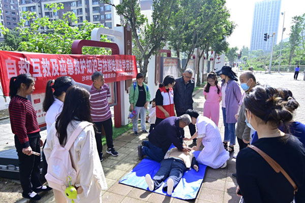 除提供義診服務外,醫(yī)院還舉行了應急救護知識與技能培訓,不少居民在醫(yī)務人員的專業(yè)指導下學習應急急救知識。