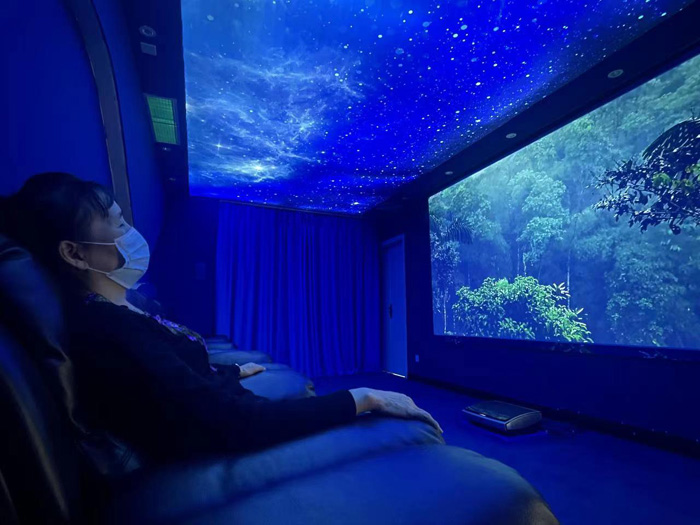 重慶大學(xué)附屬腫瘤醫(yī)院搭建“聲景空間”,讓患者在此舒緩情緒。重慶大學(xué)附屬腫瘤醫(yī)院供圖
