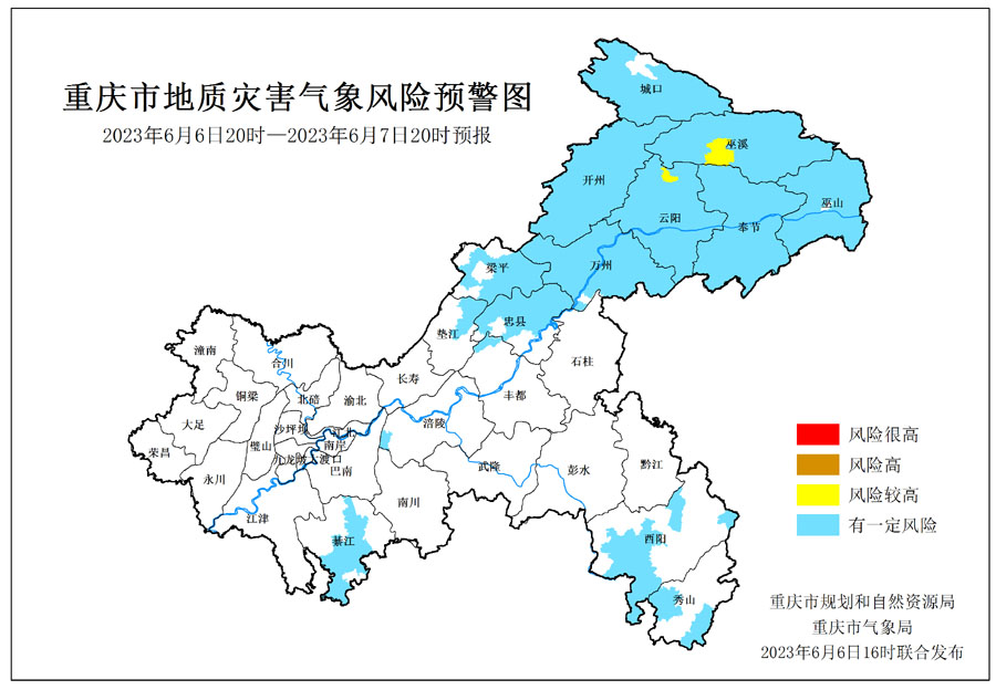 6月6日16時,重慶市規(guī)劃和自然資源局、重慶市氣象局聯(lián)合發(fā)布全市地質(zhì)災(zāi)害氣象風(fēng)險預(yù)警。