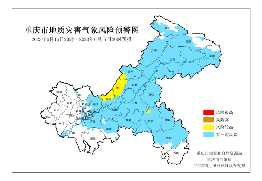 6月16日16時(shí),重慶市規(guī)劃和自然資源局、重慶市氣象局聯(lián)合發(fā)布全市地質(zhì)災(zāi)害氣象風(fēng)險(xiǎn)預(yù)警。