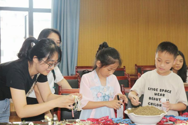 巧手制香囊,本草潤童心。在親子制香囊活動現(xiàn)場,工作人員向孩子們介紹了端午節(jié)的傳統(tǒng)習俗、生活中常見的中藥材、香囊的功效并現(xiàn)場教學了香囊的制作流程和技巧。在香囊制作過程中,孩子和家長們相互協(xié)作、齊心協(xié)力完成香囊的制作,現(xiàn)場歡聲笑語不斷,孩子們也將端午祥和、生活安康的美好祝愿裝進了小小的香囊之中。