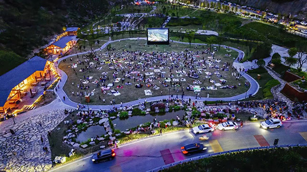 摩天嶺風(fēng)景如畫,奇峰嵯峨連綿,煙云氤氳繚繞,景色清幽之極,走進該行支持的摩天嶺哨路片區(qū)鄉(xiāng)村振興項目區(qū),露營谷三面環(huán)山,綠樹成蔭,移步即景;休閑區(qū)集美食、游樂、休閑、運動于一體,當(dāng)?shù)卮迕裨诩议T口做起了生意,“從來沒想過鄉(xiāng)村旅游的項目會在家鄉(xiāng)的村子里冒出來,好營生跑到了家門口?!碑?dāng)?shù)卮迕裾f道。