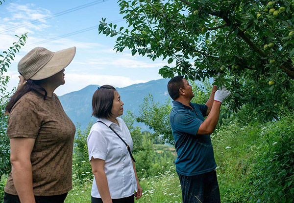 客戶經(jīng)理前往脆李種植基地開展貸后檢查。重慶農(nóng)商行供圖
