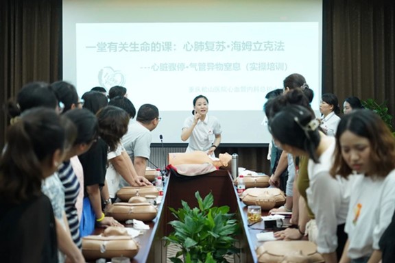 隨后,松山心血管病醫(yī)院總護(hù)士長張藝,開展了主題為《一堂有關(guān)生命的課:心肺復(fù)蘇·海姆立克法》的急救講座,強調(diào)了急救方法在生活中的重要之處。張藝表示:“如果我們學(xué)會了急救,身邊的人也都學(xué)會了急救,就可能在危急關(guān)頭挽救生命。”