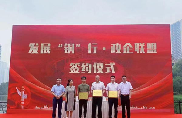 廈門(mén)銀行重慶南岸支行與南岸區(qū)銅元局街道辦事處簽訂《發(fā)展“銅”行 政企聯(lián)盟》協(xié)議。廈門(mén)銀行重慶分行供圖