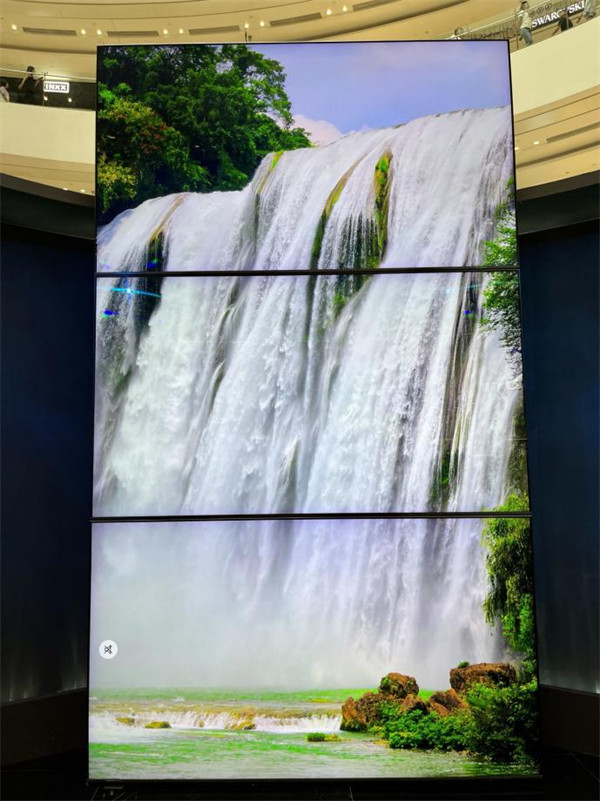 在沉浸式視聽體驗(yàn)空間,三臺(tái)98英寸的三星Q80Z電視拼接成一道栩栩如生的瀑布景觀,讓觀眾仿佛置身于自然環(huán)境中。該電視采用了全陣列直入式背光技術(shù)和AI影像增強(qiáng)技術(shù),以實(shí)現(xiàn)畫面的精細(xì)對(duì)比度和優(yōu)化。