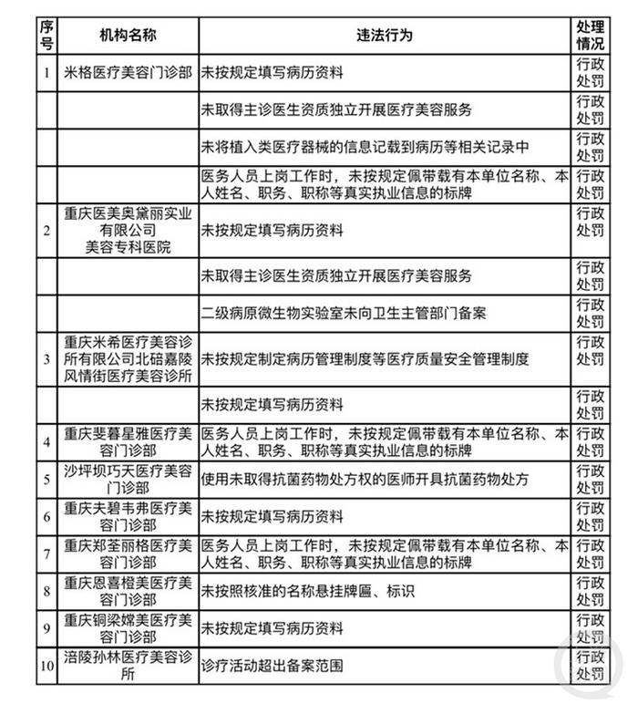 重慶10家醫(yī)美機(jī)構(gòu)涉嫌違法違規(guī)被立案查處